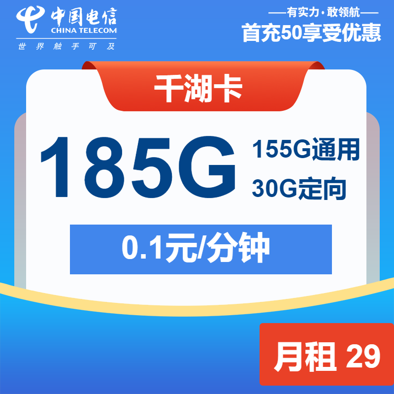 免费办理入口:电信千湖卡29元包155G通用+30G定向+通话0.1元/分钟
