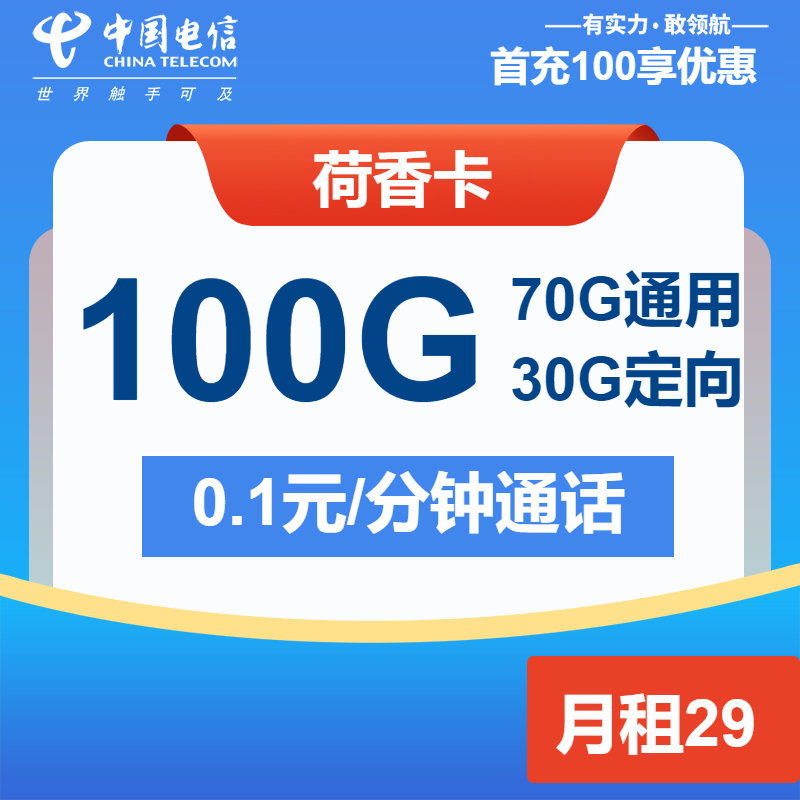 电信荷香卡29元包100G通用+30G定向+通话0.1元/分钟