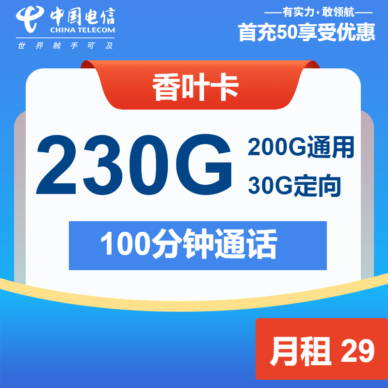 电信香叶卡29元包200G通用+30G定向+100分钟