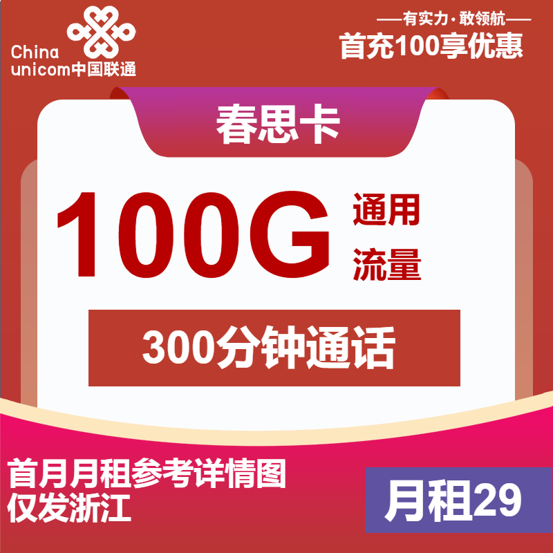 免费办理入口:联通春思卡29元包100G通用+300分钟+会员