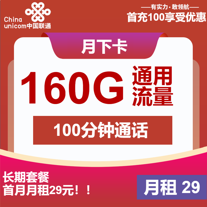 免费办理入口:联通月下卡29元包160G通用+100分钟通话