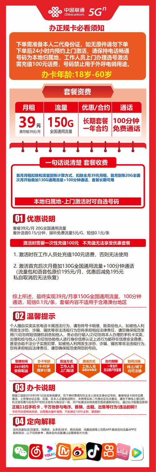 联通39元150G+100分钟admin7天前发布3.1W+553 年龄限制:18-60岁 套餐合约: 配送方式:上门激活 激活方式:上门激活 首充渠道:激活时首充100元 免费领取 包邮到家 © 版权声明分享是一种美德,转载请保留原链接THE END联通流量卡 点赞是一种美德点赞553